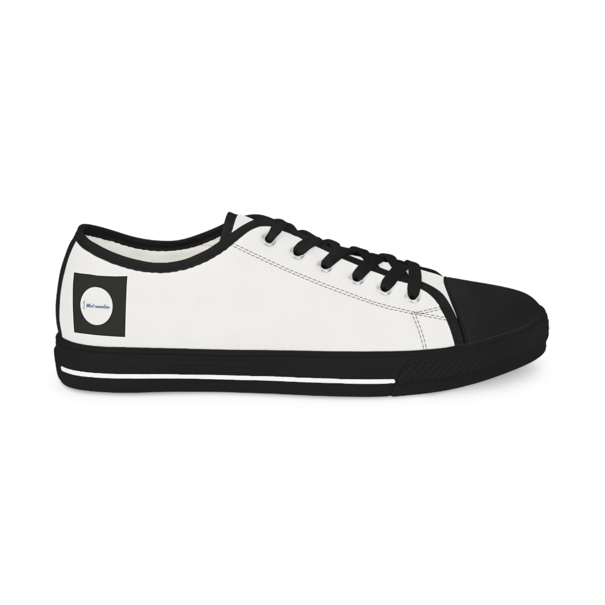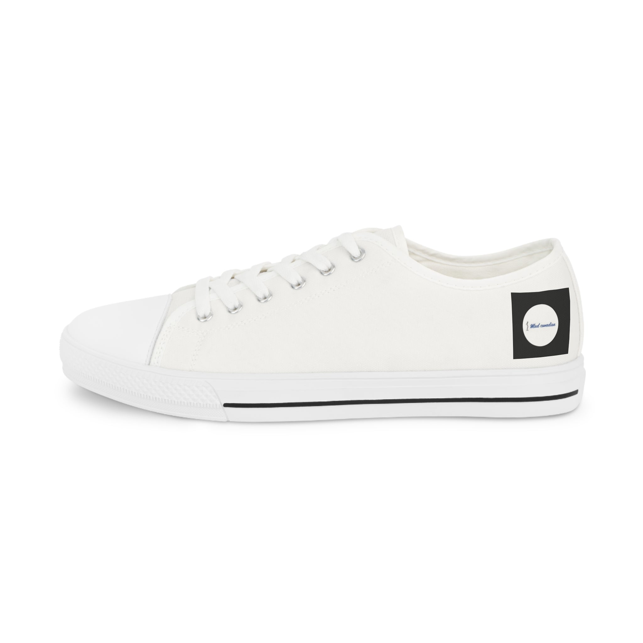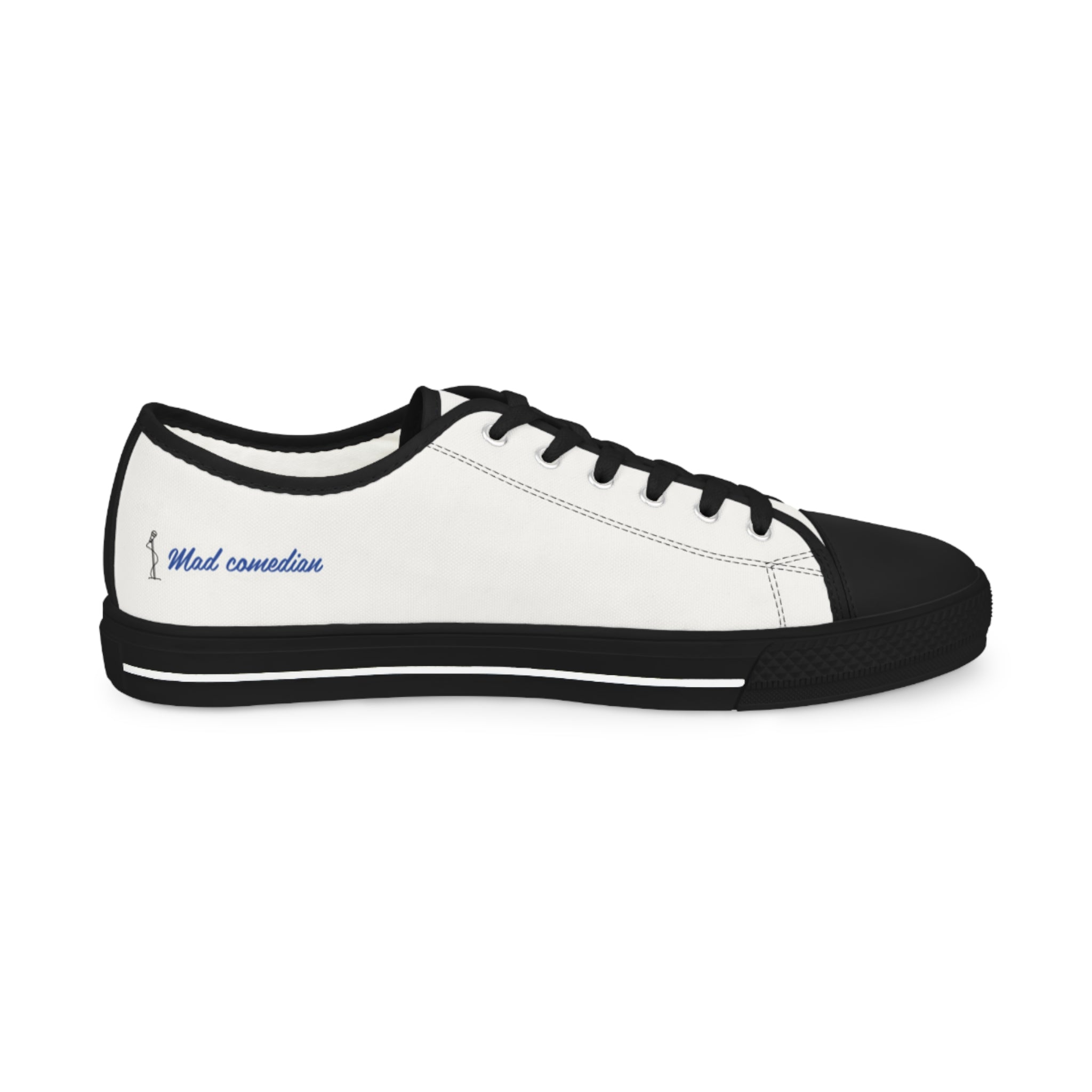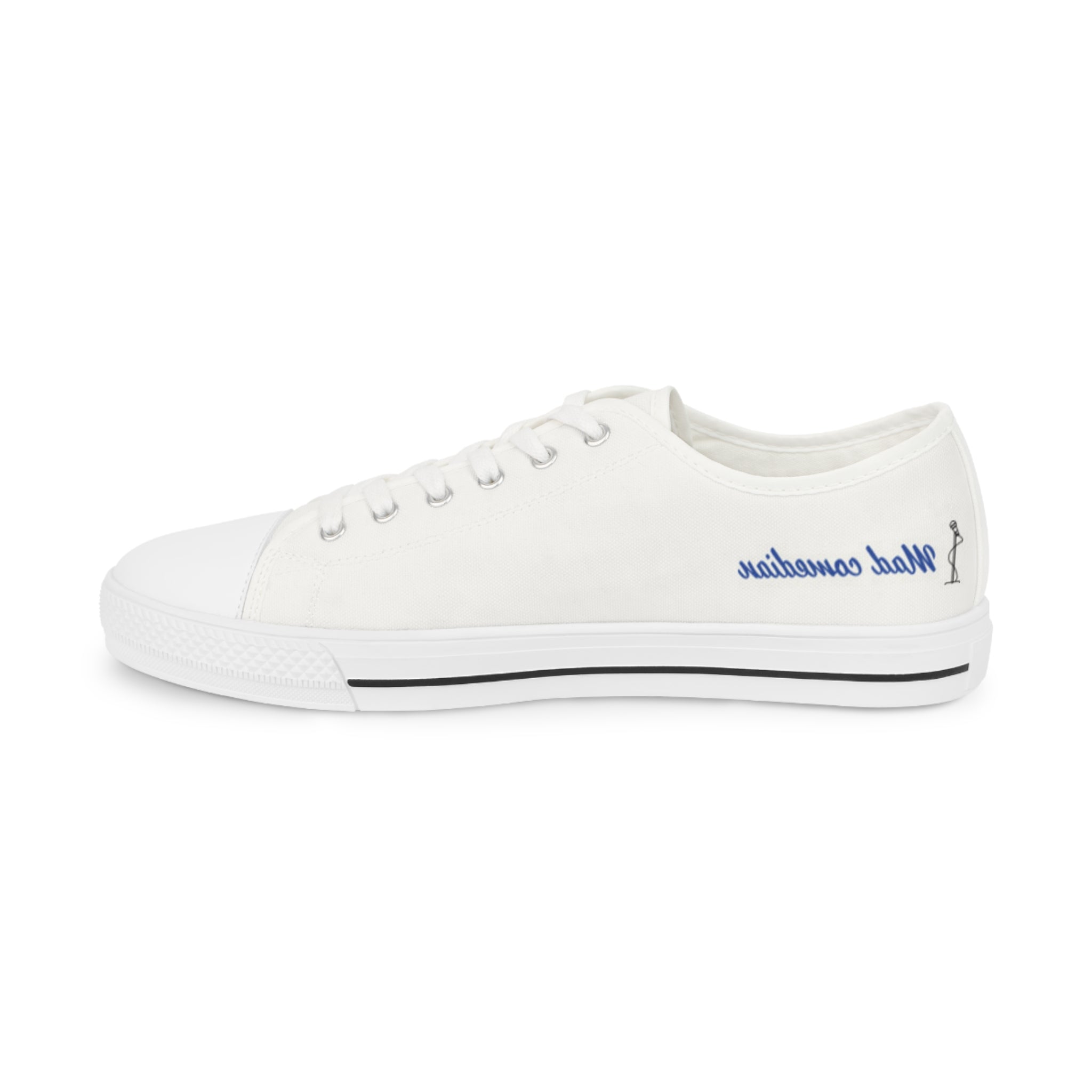 This is the official logo, and design of Mad Comedian from the Brand. Show your support with this personalized sneakers with names? Or maybe even personalized wedding sneakers? Whatever your unique design idea is, it can now go on these low top sneakers for men. Made with breathable polyester canvas and featuring hi-poly deodorant memory foam insoles, these personalized sneakers bear all the marks of an awesome shoe. Add your designs and bring a bespoke staple to life.